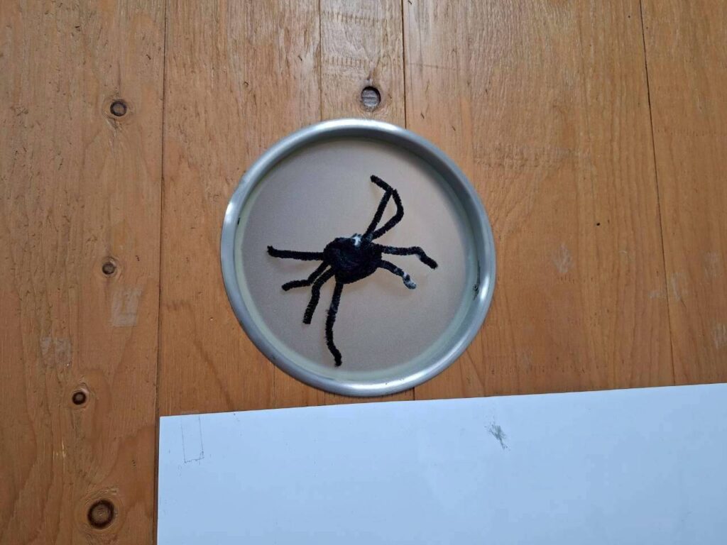正當孩子們興奮又好奇時,老師指著教室窗戶的角落。定睛一看,窗戶上赫然佈置了一隻維妙維肖的小蜘蛛,彷彿隨時會垂下一根細絲。