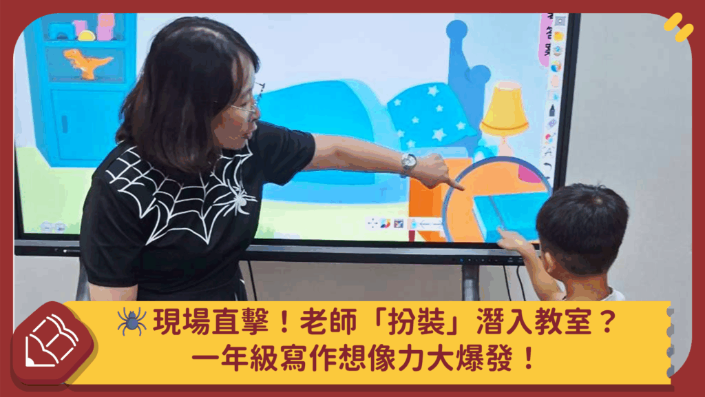 今天,我要帶大家直擊一堂精彩絕倫的一年級作文課。當我一踏進教室,就發現今天的氣氛很不一樣。老師,竟然穿著一身蜘蛛裝站在門口迎接!