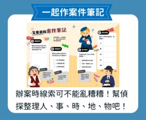 第一堂課「枕頭懸案」:兇手就在我們之中?本堂課將帶孩子深入「分析故事情節」,從證詞中釐清脈絡。孩子將學習如何整理證據,並具體「寫出分析結果與原因」,訓練用邏輯說服他人的論述能力。