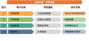 【偵探故事】單元讓孩子化身為小偵探,挑戰四樁離奇的懸疑案件。我們將閱讀理解轉化為刺激的解謎過程,引導孩子從蛛絲馬跡中「分析情節」、在字裡行間「推敲文意」。透過邏輯推理的訓練,孩子將學會如何篩選訊息、整合觀點,並將推理過程轉化為條理分明的文字。