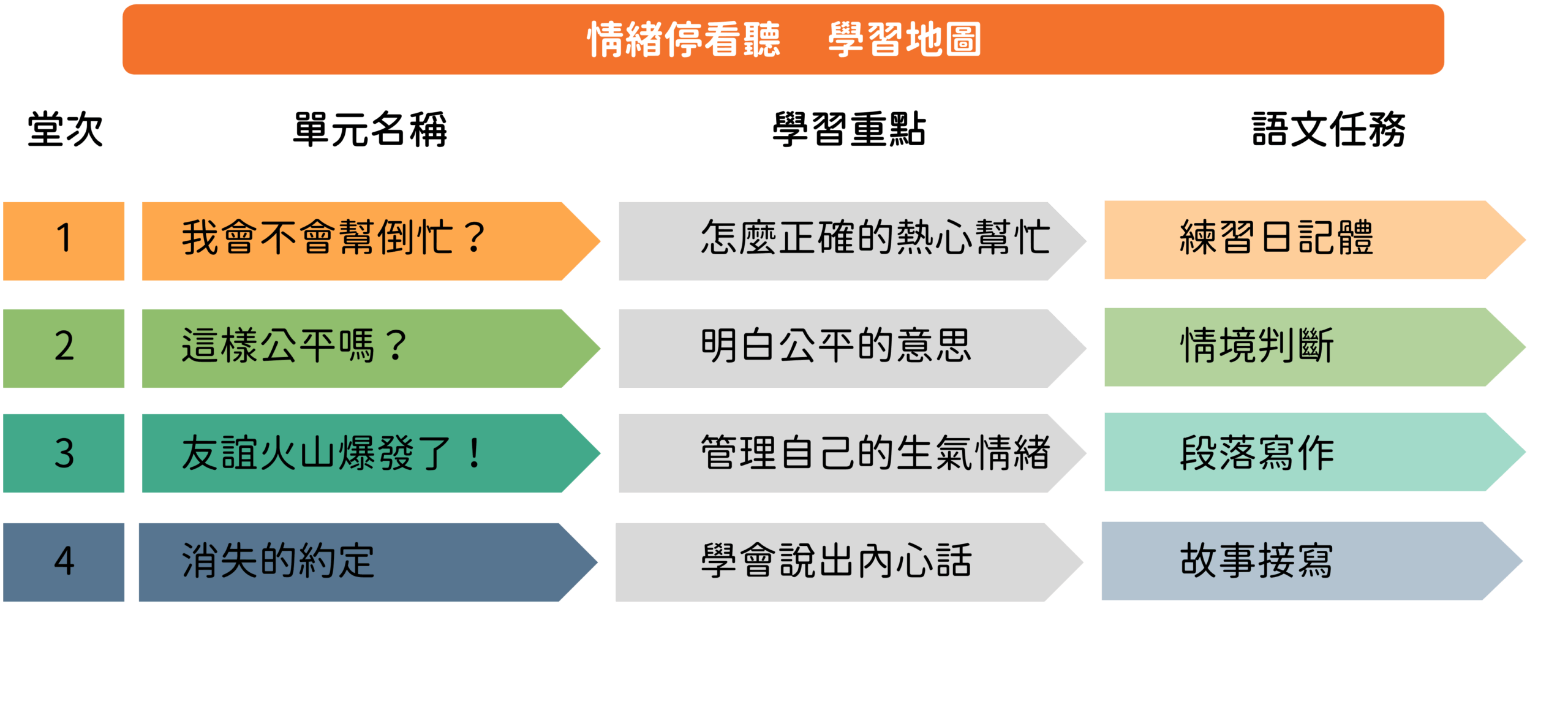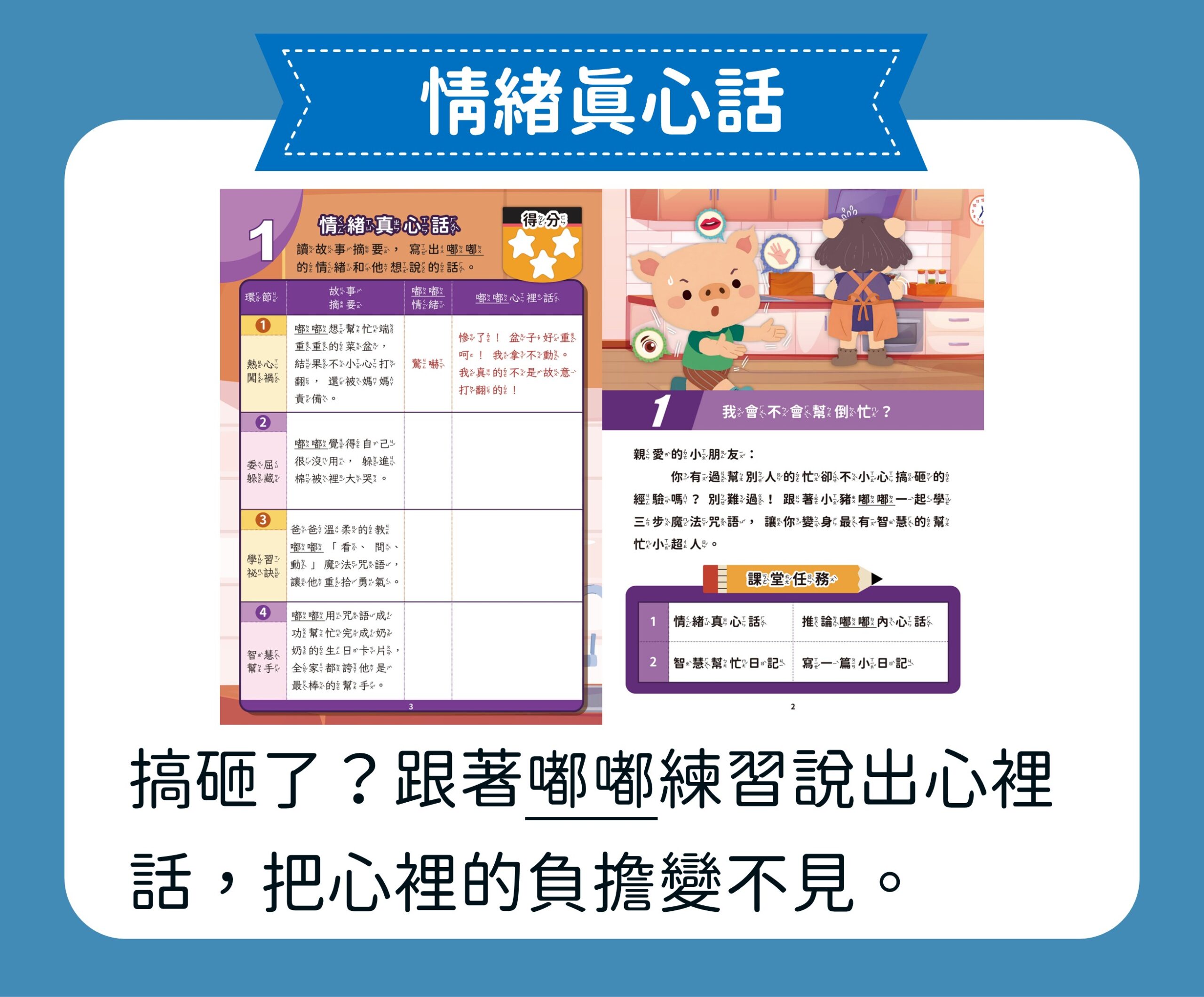 第一堂課「我會不會幫倒忙?」:熱心是好事,但幫忙也需要智慧。本堂課引導孩子思考如何適度地伸出援手,並練習日記體來記錄反思。