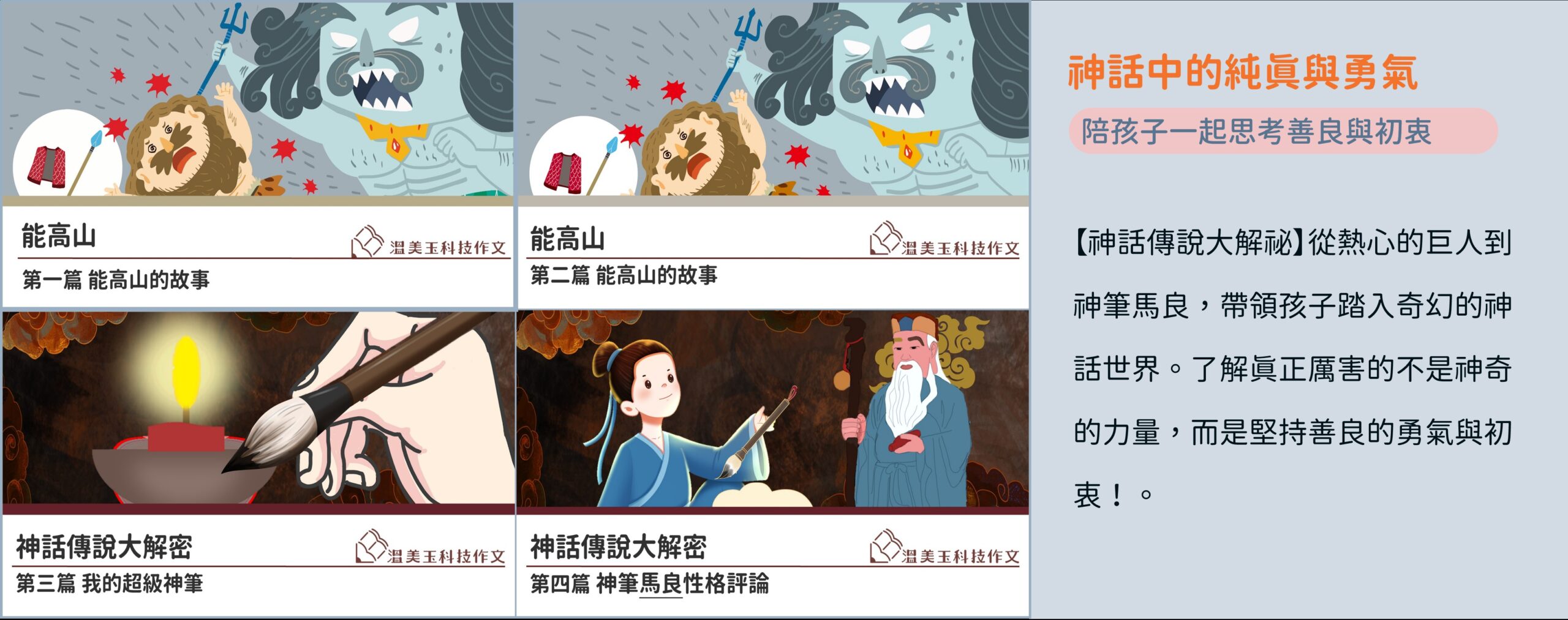從熱心的巨人到神筆馬良,帶領孩子踏入奇幻的神話世界。了解真正厲害的不是神奇的力量,而是堅持善良的勇氣與初衷!
