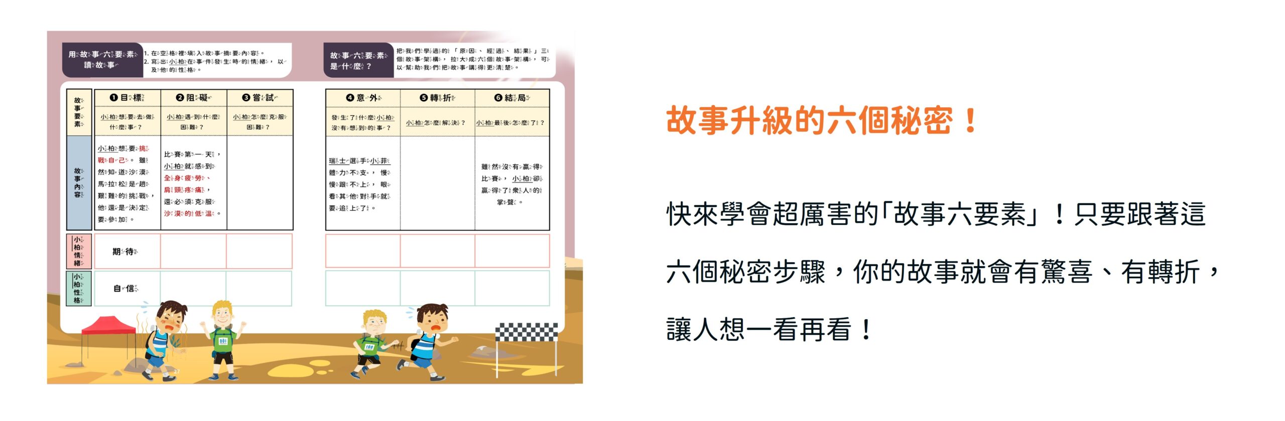 第四堂課「小柏的沙漠馬拉松挑戰」:透過一場馬拉松競賽,帶孩子學習分析「故事六要素」。