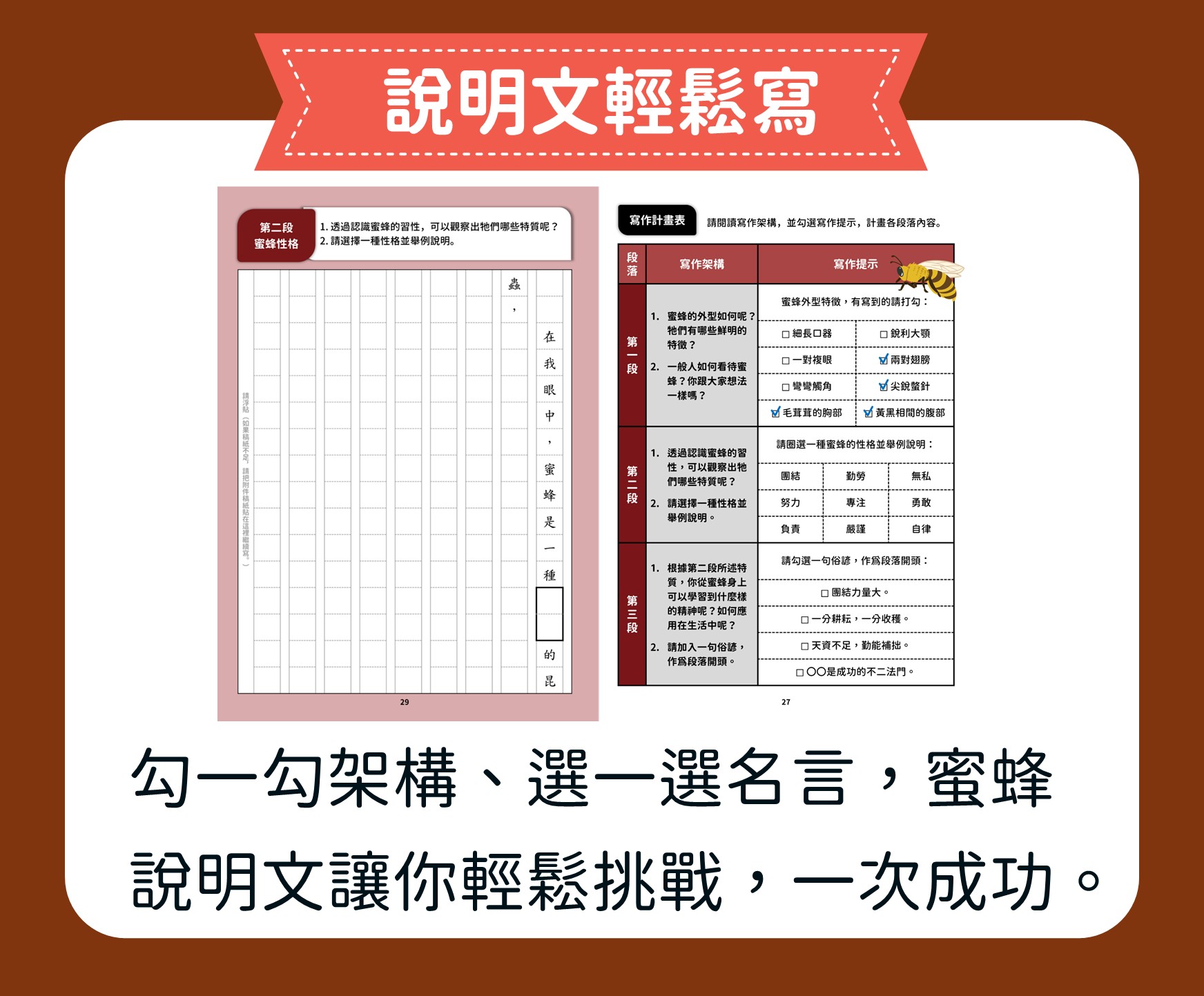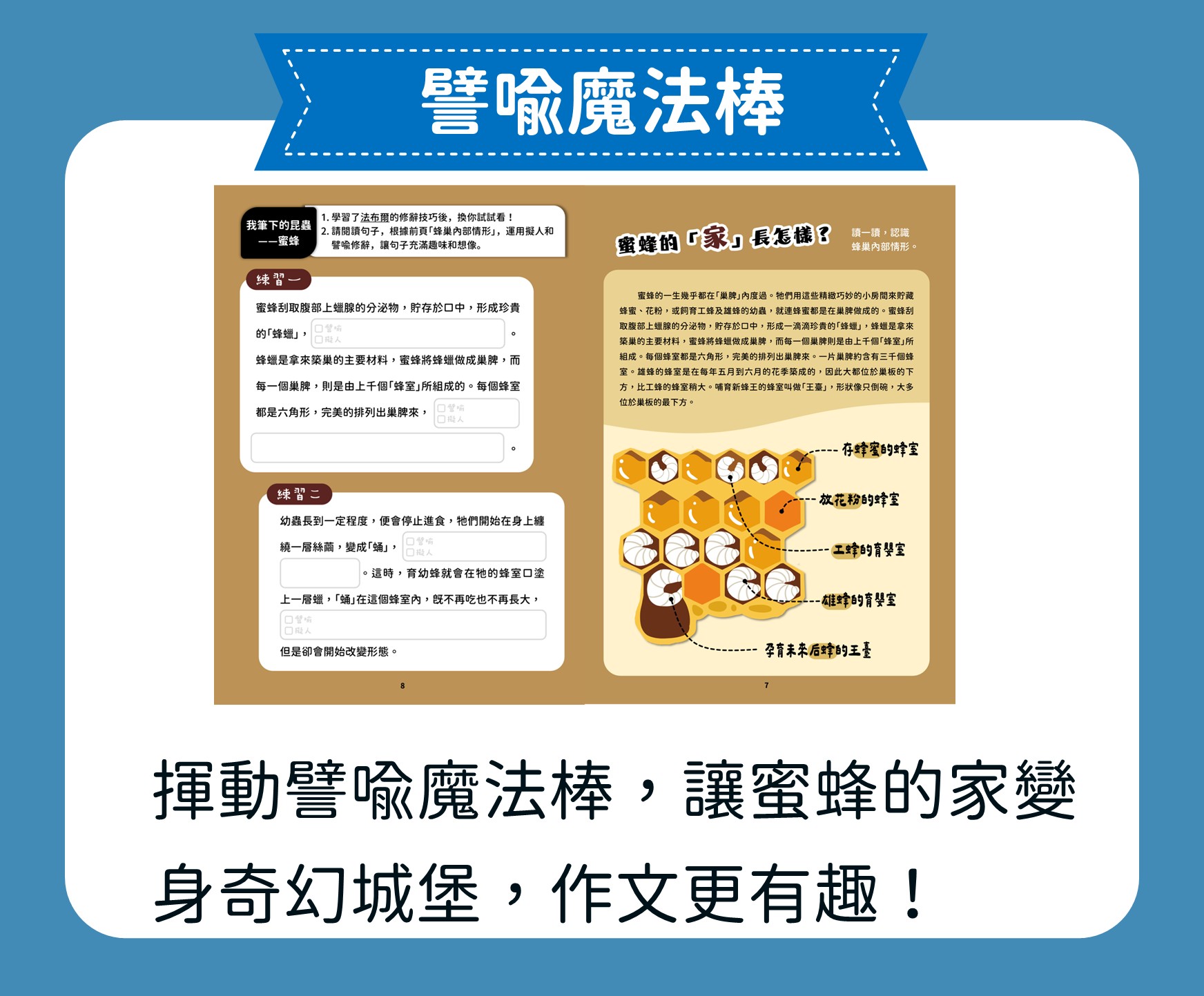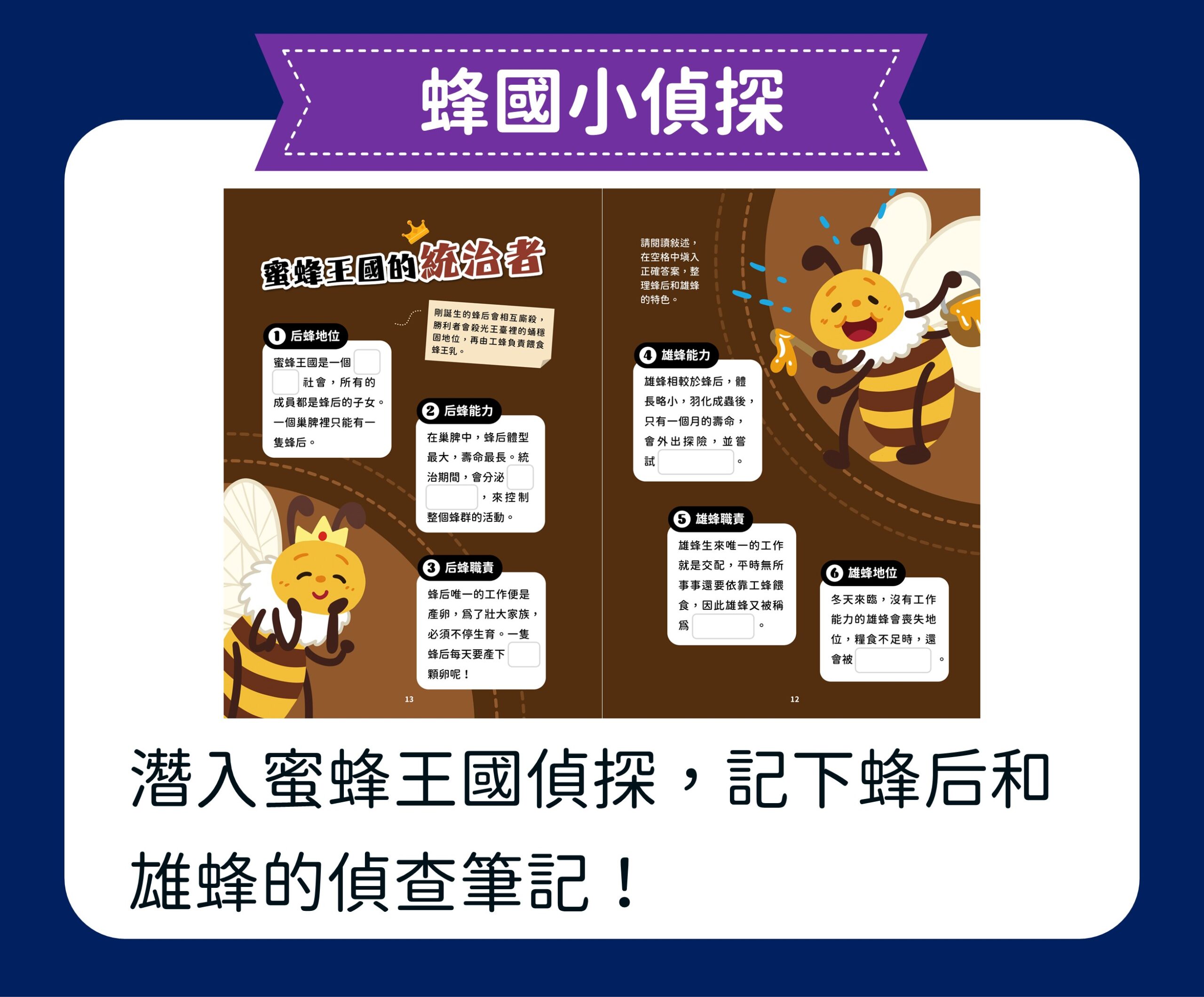 第二堂課「強盛的蜜蜂王國」 這堂課,孩子走進蜜蜂王國,認識蜂后、工蜂與雄蜂的分工。最後,統整所學,完成一篇條理清晰的蜜蜂介紹說明文。
